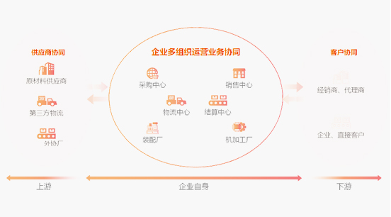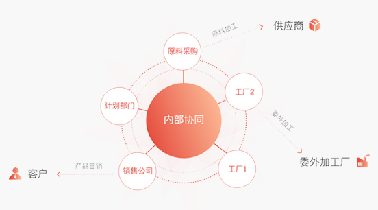 構(gòu)建在制造與全營銷平臺之上的全生 命周期解決方案,全面覆蓋內(nèi)部管理, 打通上下游供應(yīng)鏈組織及市場零售