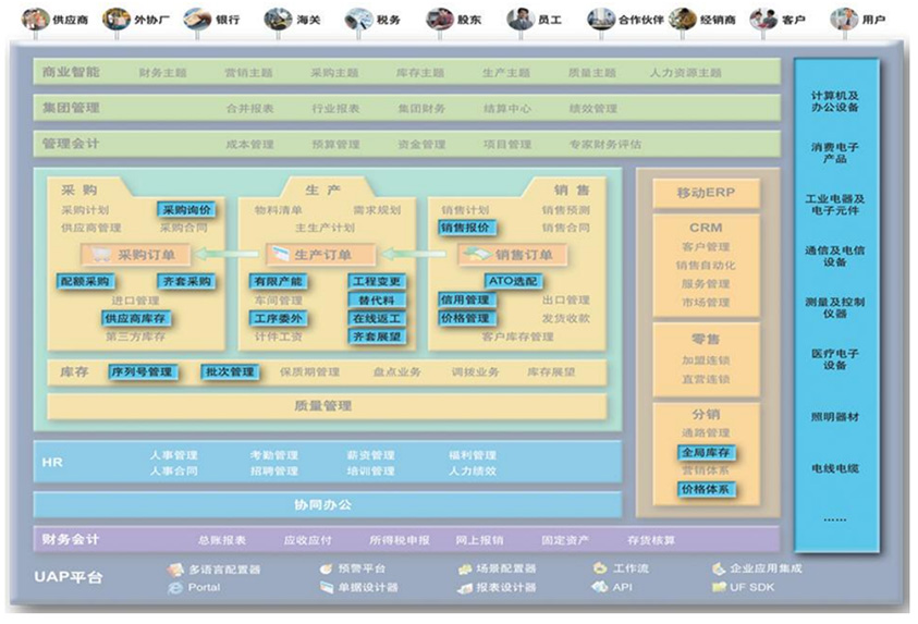 用友 U8 電子行業(yè)解決方案關鍵應用架構圖