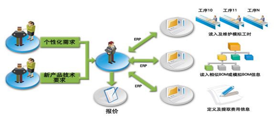 痛點難點: 產(chǎn)品成本不清楚,無法給客戶明確的價格信息。 客戶需求量小,品種多,個性化需求多,配置復雜, 成本無法快速計算清楚。 客戶要求快速相應,由于內(nèi)部響應時間過長,客戶 滿意度下降,失去部分商機。
