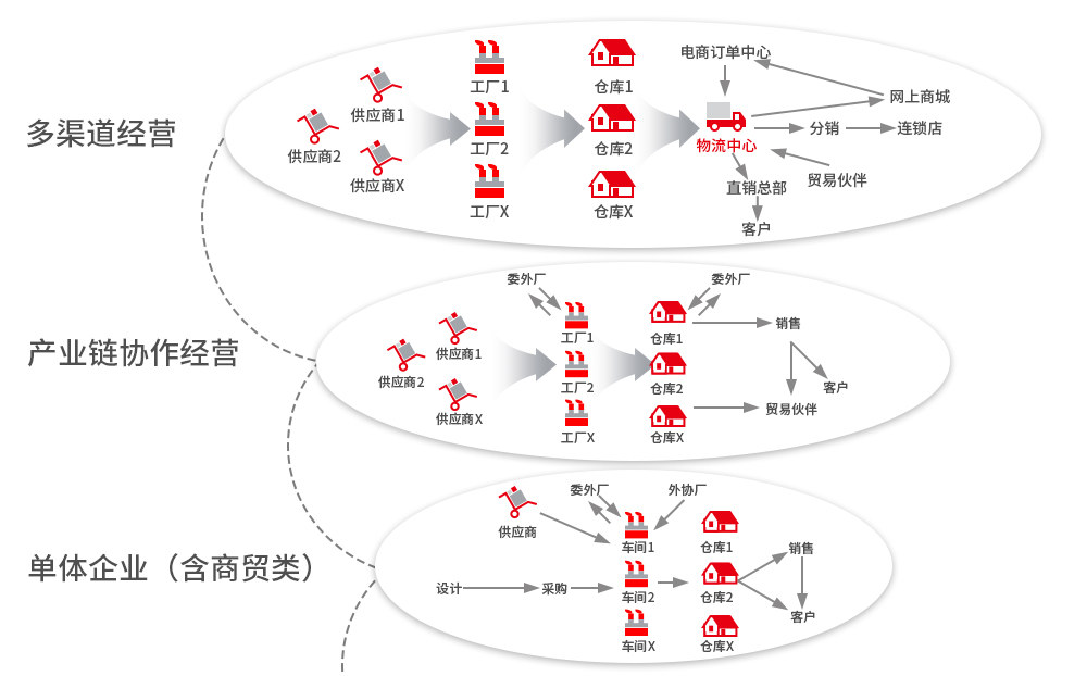 ◇ 品牌經(jīng)營企業(yè):產(chǎn)品研發(fā)+物流(采購、庫存、銷售分銷、 零售)+生產(chǎn)計劃及執(zhí)行跟蹤(計劃及跟蹤)+財務(wù)(核算、 管理)。