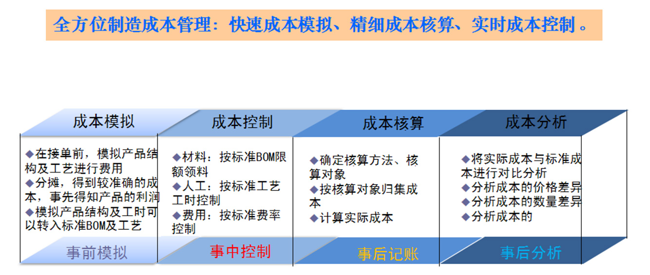 精細(xì)的成本管理:根據(jù)企業(yè)管理需求的不同,可實(shí)現(xiàn)單品成本、訂單成本、工序成本的精確核算。
